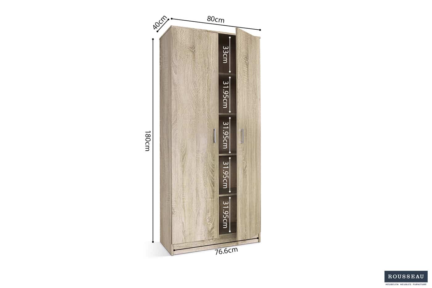 De Ray bergkast 80 cm biedt een mooie balans tussen ruimtebesparing en opbergcapaciteit.