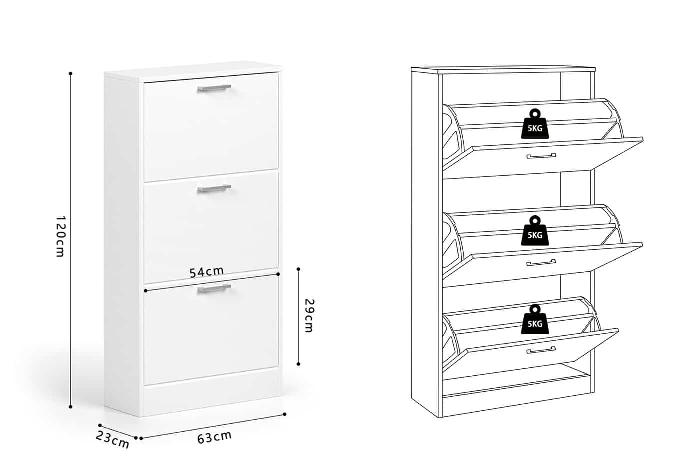 een breedte van 63 cm, hoogte van 120 cm en diepte van slechts 23 cm past deze