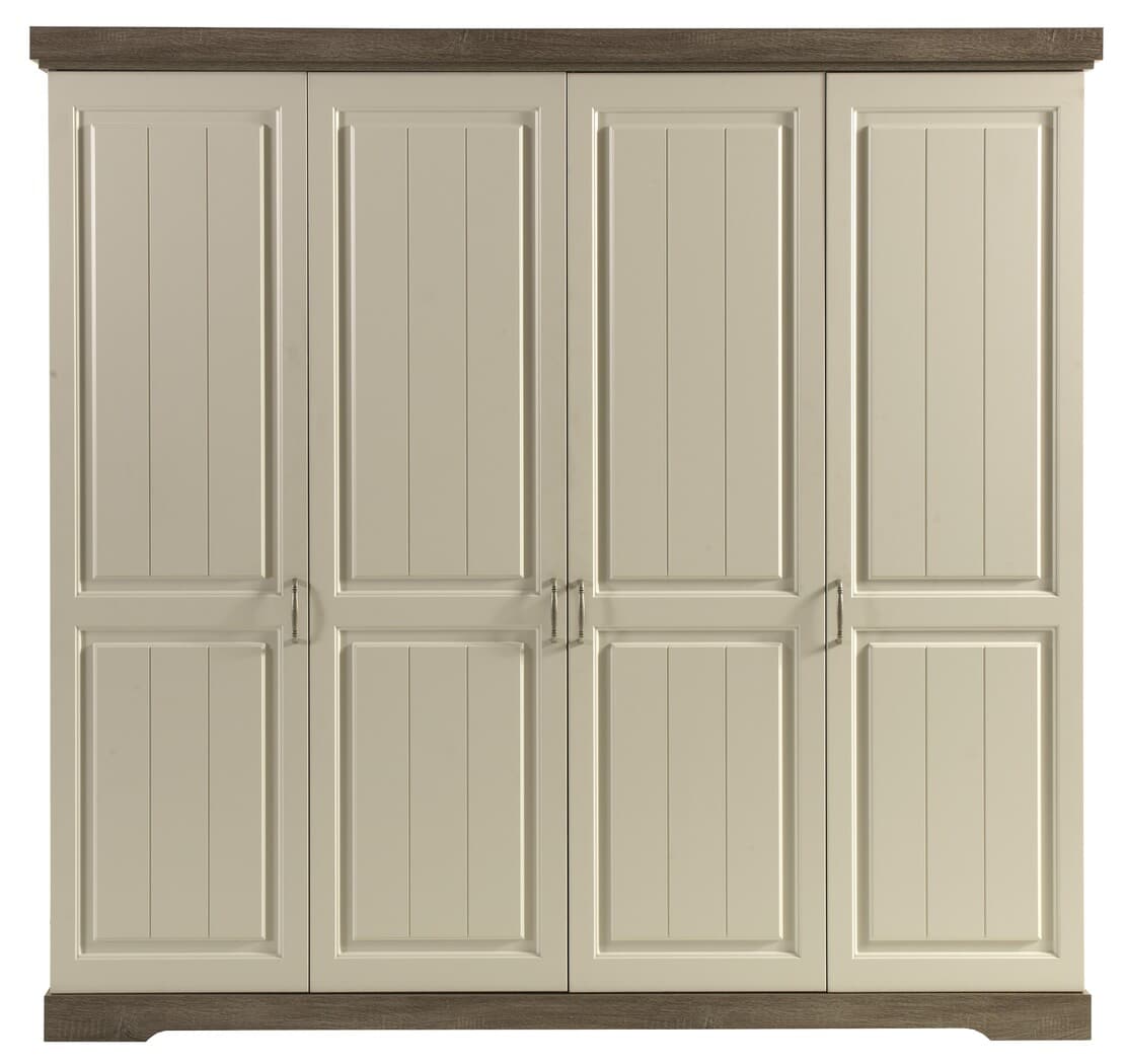 De Ivette kleerkast met 4 draaideuren combineert klassieke elegantie met praktisch comfort.