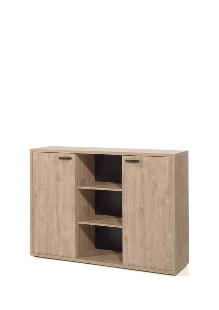 Deze halfhoge dossierkast heeft 2 deuren en 3 open vakken.